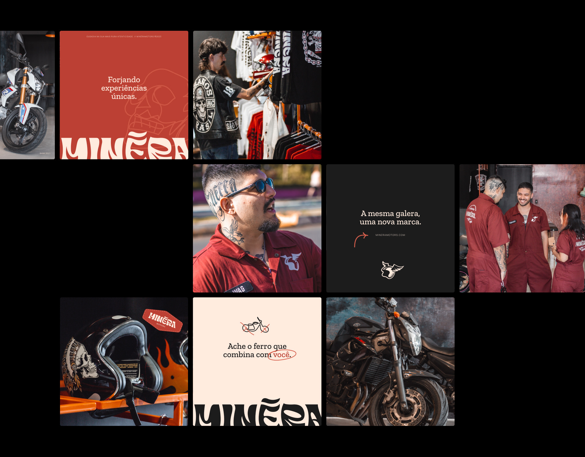 Além de uma loja de motos, a Minéra possui diversas vertentes que seguem dentro do mesmo propósito, levar liberdade para as pessoas de forma autêntica através da comercialização e customização de motos, grife, eventos e tatuagem.