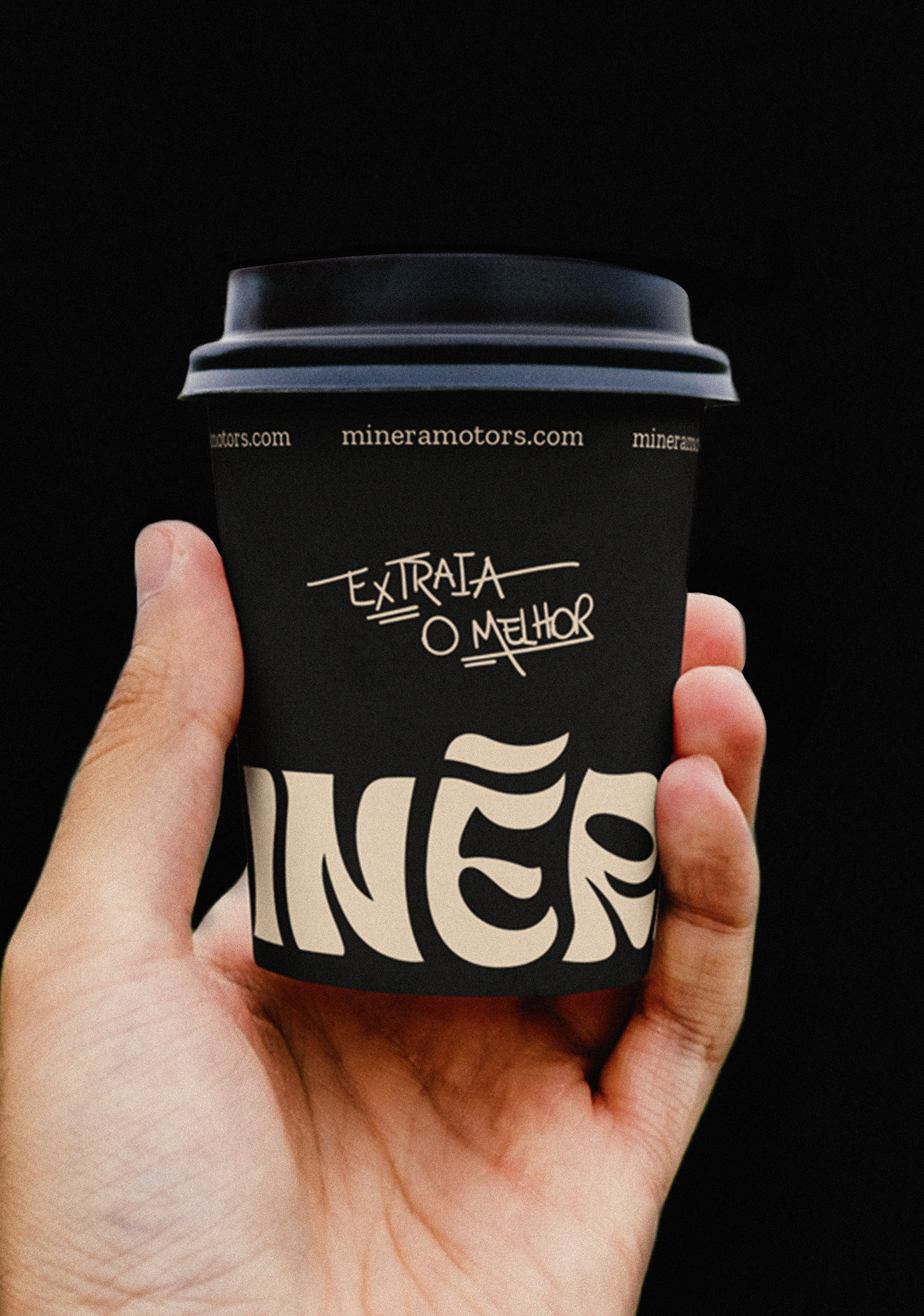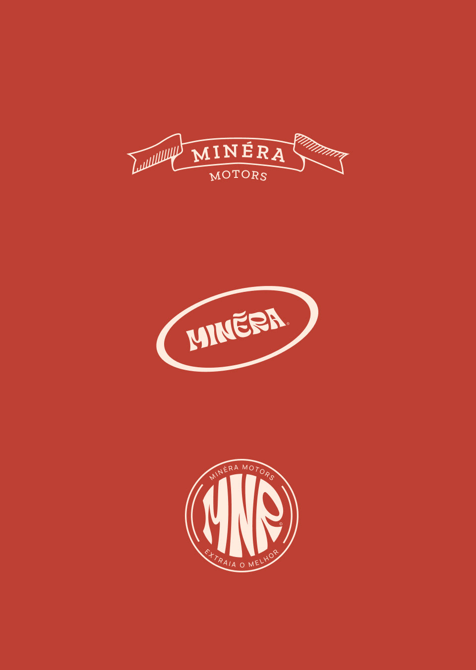 The word "minério" served as the inspiration for the name's origin as the primary component of motorcycles. They are moved by creating intense experiences and figuring out what "iron" is best for each person. The brand's identity needed to convey every sentiment and attitude the company had in its most pure form, therefore was created a logo that, while being strong, also speaks to flexibility/malleability, taking inspiration from how lava forms into igneous rocks. The way the letters are nested one inside the other gives the impression that they were forged from a single mineral.